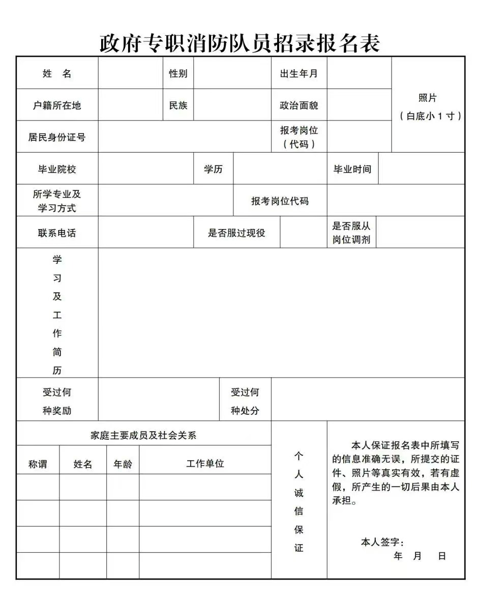 附件1:政府专职消防队员招录报名表